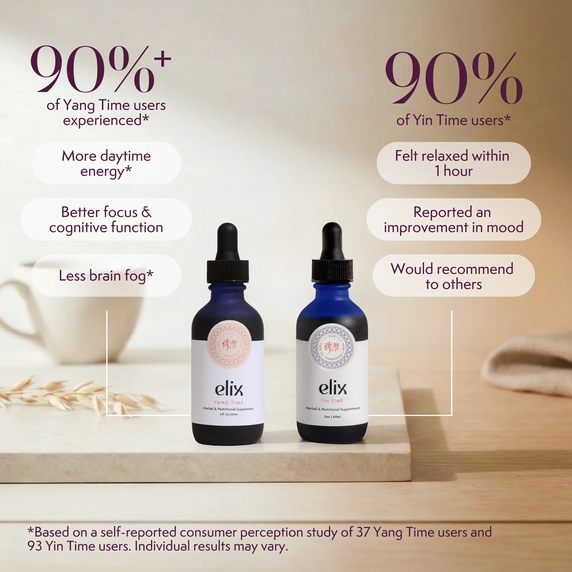 Own the day. Unwind the night.Start your morning with Yang Time for mental clarity, calm focus, and steady energy. End your evening with Yin Time to soothe the nervous system and support deep, restorative sleep. Both formulas are crafted with organic, clinically proven functional mushrooms and adaptogens to support your natural circadian rhythm.